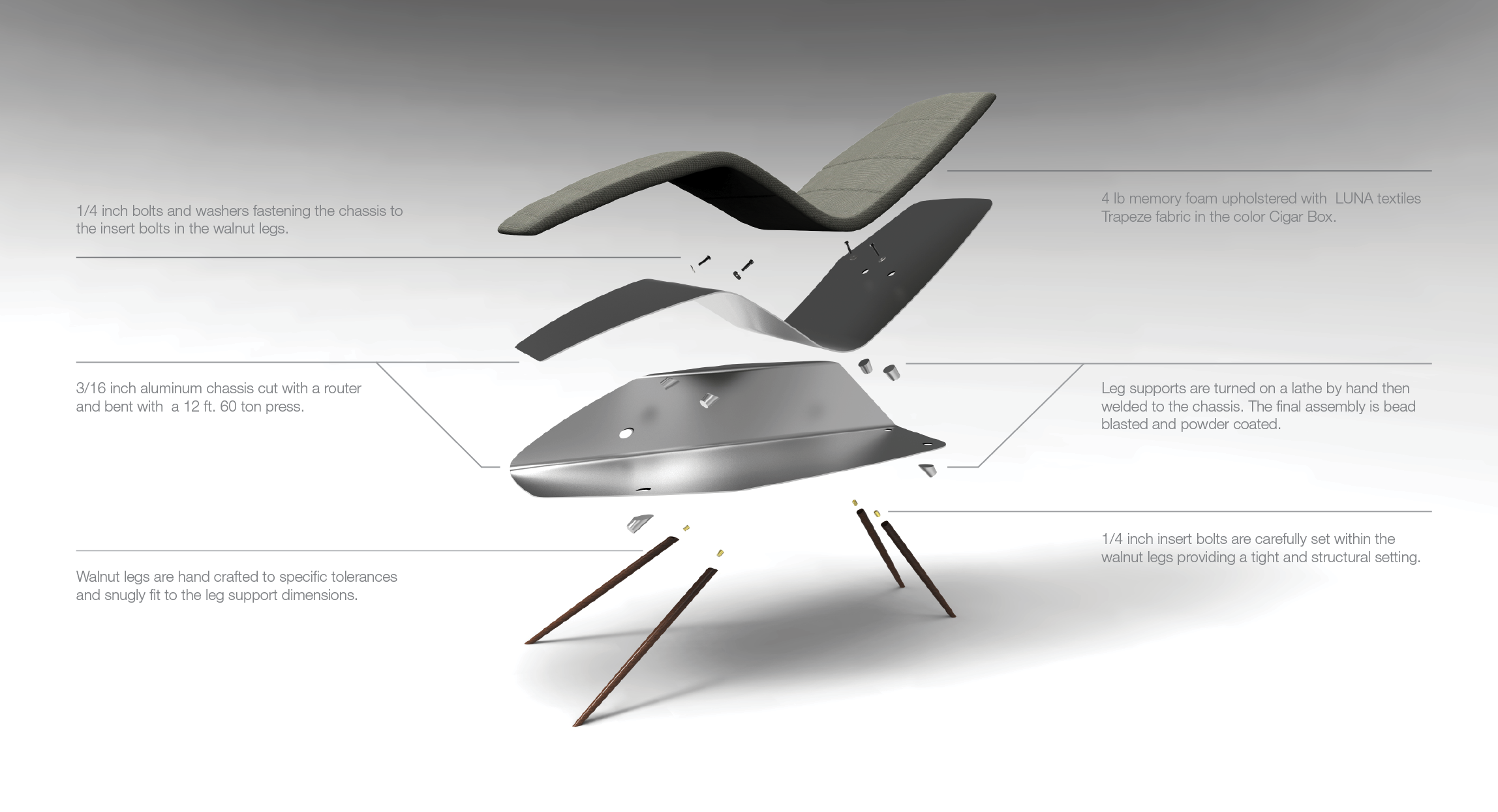 An exploration of form, ergonomics, structure, and material, with the overall goal of defining, designing and manufacturing a unique chaise lounge.