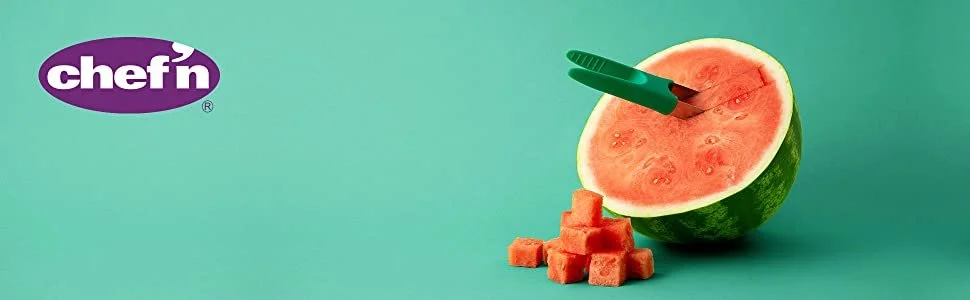 The Slicester Watermelon Tool cubes and slices melons safely so you can put that big knife back in the block. Make perpendicular cuts to create those perfect watermelon cubes. Grab slices and cubes out with the tong end of the tool. Less mess, more melon!